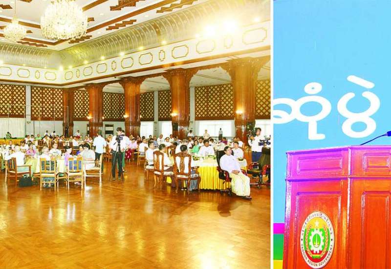 ရခိုင်တိုင်းရင်းသားအသင်းအဖွဲ့များနှင့် တွေ့ဆုံပွဲအခမ်းအနားကို ယနေ့နံနက်ပိုင်းတွင် ရန်ကုန်တိုင်းဒေသကြီး အစိုးရအဖွဲ့ရုံးမင်္ဂလာခန်းမ၌ ကျင်းပသည်။