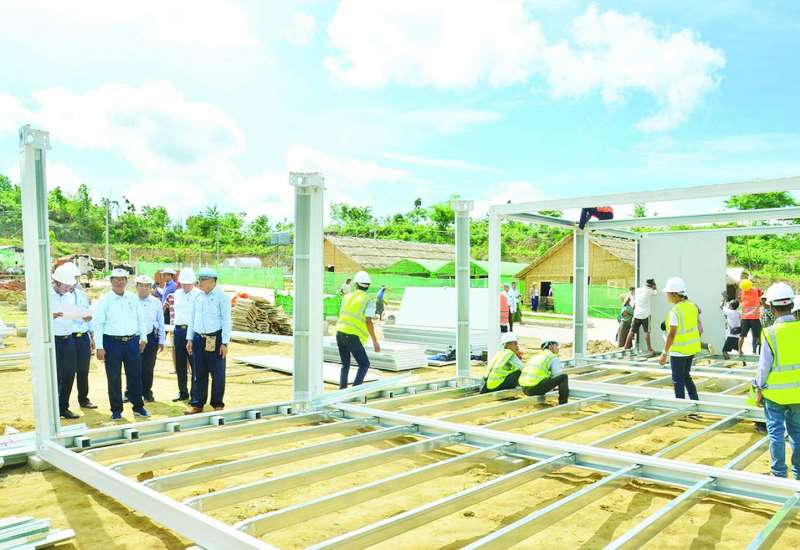 လျှပ်စစ်စွမ်းအားဝန်ကြီးဌာန ပြည်ထောင်စုဝန်ကြီး ဦးဉာဏ်ထွန်းသည် ဒုတိယဝန်ကြီး ဦးအေးကျော်နှင့်အတူ ယနေ့နံနက်ပိုင်းတွင် ဥတ္တရသီရိမြို့နယ်ရှိ နေပြည်တော်ဗဟိုသင်တန်းကျောင်းဝင်းအတွင်း ဝန်ကြီးဌာနမှ ငလျင်ဘေးသင့်ဝန်ထမ်းများနှင့် ဝန်ထမ်းမိသားစုများ ယာယီပြောင်းရွှေ့နေထိုင်နိုင်ရန်အတွက် Container House များ တည်ဆောက်နိုင်ရန်ပစ္စည်းများ ရောက်ရှိမှု၊ တပ်ဆင်တည်ဆောက်နေမှုအခြေအနေကို သွားရောက်ကြည့်ရှုစစ်ဆေးသည်။