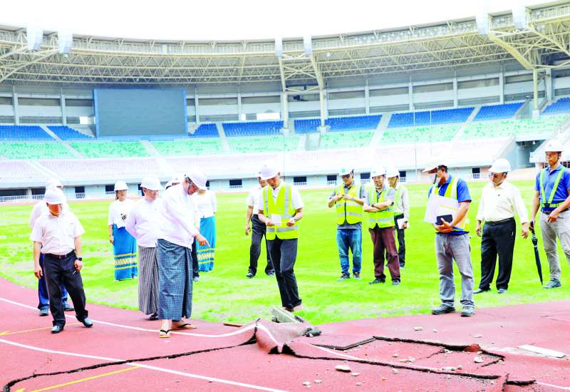 အားကစားနှင့်လူငယ်ရေးရာဝန်ကြီးဌာန ပြည်ထောင်စုဝန်ကြီး Jeng Phang နော်တောင်သည် ဒုတိယဝန်ကြီး ဦးထိန်လင်း၊ အားကစားနှင့်ကာယပညာဦးစီးဌာန ညွှန်ကြားရေးမှူးချုပ် ဦးထွန်းမြင့်ဦး နှင့်အတူ ယနေ့နံနက်ပိုင်းတွင် မန္တလေးပြင်းထန် ငလျင်ဒဏ်နှင့် မေလတွင် ဖြစ်ပွားခဲ့သော နောက်ဆက်တွဲ ငလျင်များကြောင့် ဝဏ္ဏသိဒ္ဓိအားကစားကွင်းအတွင်းရှိ ထိခိုက်ပျက်စီးဆုံးရှုံးခဲ့သည့် ဘောလုံးအားကစားကွင်းပတ်လည် အဆောက်အအုံများနှင့် Synthetic ပြေးလမ်းများကို Max Myanmar Construction Co.,Ltd. မှ ပြည်လည်ရှင်းလင်းပြုပြင်ဆောင်ရွက်နေမှုအခြေအနေများကိုလည်းကောင်း၊ အားကစားကွင်းအပြင်ဘက် ယာဉ်ပတ်လမ်းတစ်လျှောက်ပျက်စီးကွဲအက်နေမှု အခြေအနေများကိုလည်းကောင်း လိုက်လံကြည့်ရှုစစ်ဆေးသည်။