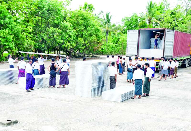 တိုင်းရင်းသားလူမျိုးများရေးရာဝန်ကြီးဌာန ပြည်ထောင်စုဝန်ကြီး ခွန်သန့်ဇော်ထူးသည် ဒုတိယဝန်ကြီး ဦးဇော်အေးမောင်၊ ဌာနဆိုင်ရာအကြီးအကဲများနှင့်အတူ ယနေ့မွန်းလွဲပိုင်းတွင် မန္တလေးငလျင်ကြောင့် ငလျင်ဒဏ်သင့်ခဲ့သည့် ဝန်ထမ်းနှင့် ဝန်ထမ်းမိသားစုများ ယာယီနေထိုင်နိုင်ရေးအတွက် Modular House များ ရောက်ရှိလာပြီး ကွန်တိန်နာပေါ်မှ သယ်ချနေမှုနှင့် တပ်ဆင်တည်ဆောက်နေမှုကို လိုက်လံကြည့်ရှုစစ်ဆေးသည်။