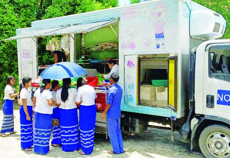 စီးပွားရေးနှင့်ကူးသန်းရောင်းဝယ်ရေးဝန်ကြီးဌာန၊ မြန်မာနိုင်ငံ ကုန်သည်များနှင့်စက်မှုလက်မှု လုပ်ငန်းရှင်များအသင်းချုပ် (UMFCCI)၊ မြန်မာနိုင်ငံ မွေးမြူရေးလုပ်ငန်းအဖွဲ့ချုပ်နှင့် မြန်မာနိုင်ငံ ငါးလုပ်ငန်းအဖွဲ့ချုပ်တို့၏ ပူးပေါင်းစီစဉ်မှုဖြင့် ဆန်၊ ဆီ၊ ဆား၊ ပဲ၊ ငါး၊ ငါးပိ၊ အမဲသား၊ ဆိတ်သား၊ ကြက်သား၊ ဝက်သား၊ ကြက်ဥ၊ ဘဲဥစသည့် ကုန်မျိုးစုံများနှင့် ဟင်းသီးဟင်းရွက်များကို ပြည်ထောင်စုနယ်မြေ (နေပြည်တော်) စစ်ကိုင်းနှင့် မန္တလေးမြို့များအတွင်း ငလျင်ဘေးသင့် ဝန်ထမ်းများနှင့် ပြည်သူများသို့ မတ် ၃၀ ရက်မှစ၍ သက်သာသော ဈေးနှုန်းများဖြင့် ရောင်းချပေးလျက်ရှိပြီး ယနေ့တွင် ၄၉ ရက်မြောက်အဖြစ် ဈေးကားများဖြင့် လှည့်လည်ရောင်းချပေးလျက်ရှိကြောင်း သိရှိရသည်။