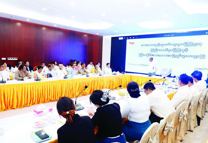 (၃၃)ကြိမ်မြောက် အရှေ့တောင်အာရှအားကစားပြိုင်ပွဲ ဝင်ရောက်ယှဉ်ပြိုင်မည့် မြန်မာနိုင်ငံအားကစားအဖွဲ့ချုပ်များနှင့် တွေ့ဆုံညှိနှိုင်းအစည်းအဝေးကို ယမန်နေ့နံနက်ပိုင်းက အမျိုးသားအားကစားပြိုင်ပွဲရုံ(၁) သုဝဏ္ဏရှိ ပတ္တမြားခန်းမ၌ ကျင်းပသည်။
