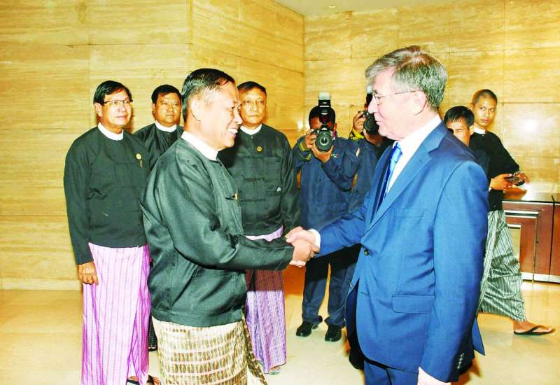 ရုရှားဖက်ဒရေးရှင်းနိုင်ငံ၏ (၁၉၄၁ - ၁၉၄၅) မဟာမျိုးချစ်စစ်ပွဲကြီးအောင်ပွဲ နှစ် (၈၀) ပြည့်အထိမ်းအမှတ် ညစာစားပွဲအခမ်းအနားကို ယနေ့ညပိုင်းတွင် ရန်ကုန်မြို့ရှိ Lotte Hotel ၌ ကျင်းပရာ နိုင်ငံတော်စီမံအုပ်ချုပ်ရေးကောင်စီ ဒုတိယဥက္ကဋ္ဌ ဒုတိယဝန်ကြီးချုပ် ဒုတိယဗိုလ်ချုပ်မှူးကြီး စိုးဝင်းနှင့် ဇနီး ဒေါ်သန်းသန်းနွယ် တက်ရောက်ချီးမြှင့်သည်။