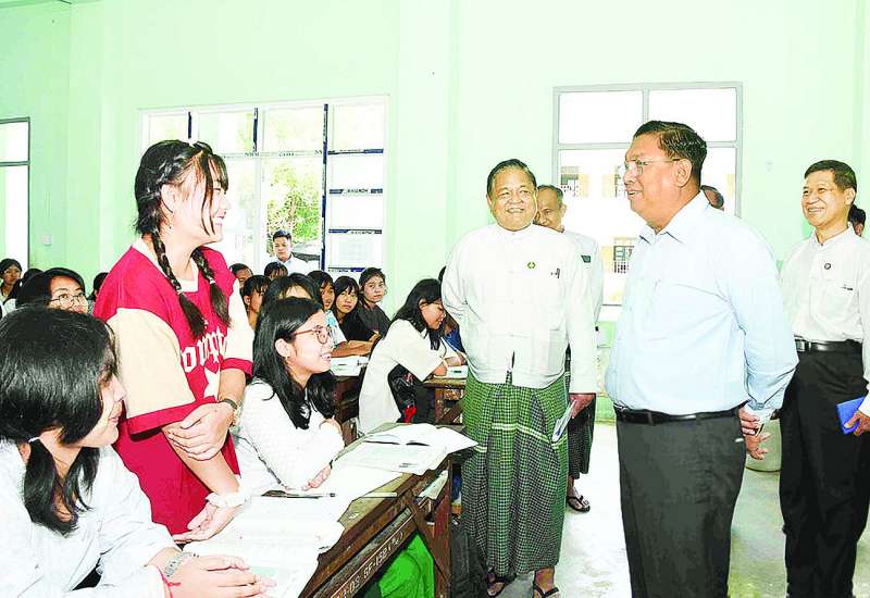 ပညာရေးဝန်ကြီးဌာန ပြည်ထောင်စုဝန်ကြီး ဒေါက်တာ ညွန့်ဖေသည် ကချင်ပြည်နယ်ဝန်ကြီးချုပ် ဦးခက်ထိန်နန်၊ ဒုတိယဝန်ကြီး ဦးနေမျိုးလှိုင်၊ ကချင်ပြည်နယ်အစိုးရအဖွဲ့ဝင်များ၊ ပညာရေးဝန်ကြီးဌာနမှ တာဝန်ရှိသူများ၊ ကချင်ပြည်နယ်ပညာရေးမှူးနှင့်အတူ ယနေ့နံနက်ပိုင်းတွင် ကချင်ပြည်နယ် မြစ်ကြီးနားမြို့ရှိ တက္ကသိုလ်၊ ဒီဂရီကောလိပ်နှင့် အခြေခံပညာကျောင်းများသို့ သွားရောက်ကြည့်ရှုစစ်ဆေး ၍ တက္ကသိုလ်ဝင်စာမေးပွဲ ပြန်လည်ဖြေဆိုမည့် ကျောင်းသား ကျောင်းသူများအား ရင်းရင်းနှီးနှီးတွေ့ဆုံ အားပေးစကားပြောကြားကာ လိုအပ်သည်များကို ဖြည့်ဆည်းဆောင်ရွက်ပေးသည်။
