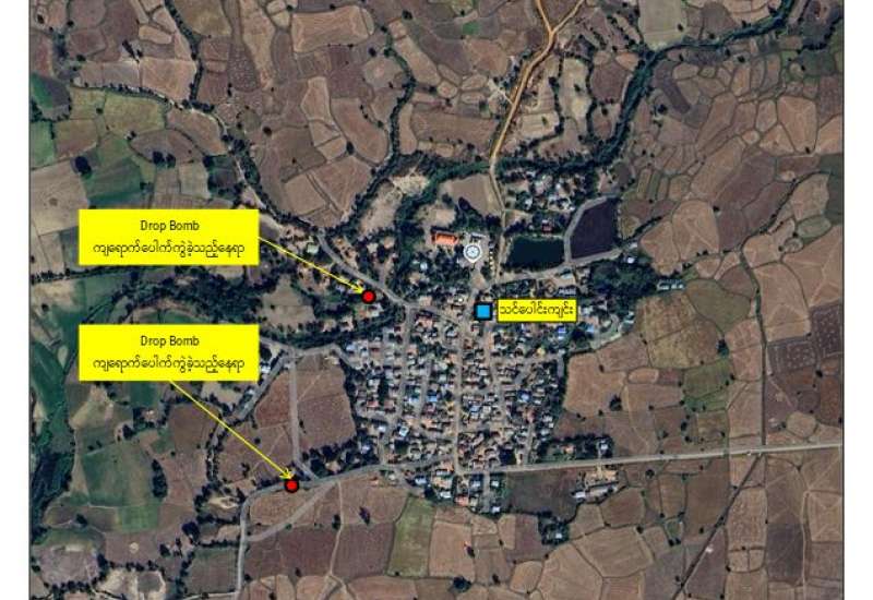 စစ်ကိုင်းတိုင်းဒေသကြီး၊ ကန့်ဘလူမြို့နယ်၊ သင်ပေါင်းကျင်းကျေးရွာကို PDF အမည်ခံအကြမ်းဖက်သမားများက မေ ၆ ရက် နံနက်ပိုင်းတွင် Drop Bomb များဖြင့် ပစ်ချတိုက်ခိုက်ခဲ့သဖြင့် အပြစ်မဲ့ပြည်သူများ သေဆုံး၊ ဒဏ်ရာများ ရရှိခဲ့ကြောင်း သိရှိရသည်။