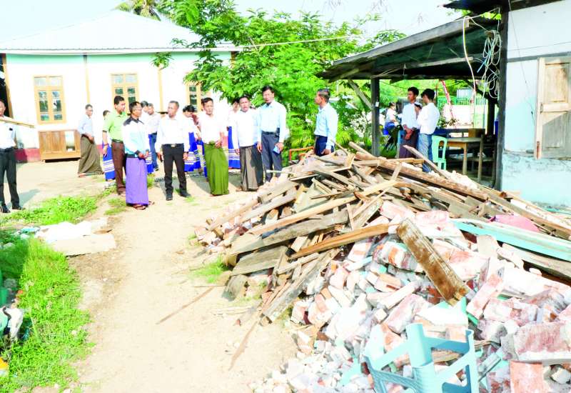သမဝါယမနှင့်ကျေးလက်ဖွံ့ဖြိုးရေးဝန်ကြီးဌာန ဒုတိယဝန်ကြီး ဦးမြင့်စိုးသည် တာဝန်ရှိသူများနှင့်အတူ မန္တလေးငလျင်ကြီး လှုပ်ခတ်မှုကြောင့် ထိခိုက်မှုရှိခဲ့သော မန္တလေးတိုင်းဒေသကြီး ရမည်းသင်းမြို့ရှိ ကျေးလက်ဒေသဖွံ့ဖြိုးတိုးတက်ရေးဦးစီးဌာန ခရိုင်ဦးစီးမှူးရုံးသို့ ယနေ့နံနက် ပိုင်းက သွားရောက်ကြည့်ရှုစစ်ဆေးကာ မိမိဝန်ကြီးဌာန၏ တိုင်း၊ ခရိုင်၊ မြို့နယ်အင်ဂျင်နီယာများပါဝင်သော အကြိုစစ်ဆေးရေးလုပ်ငန်းအဖွဲ့ ဖွဲ့စည်း၍ ရုံးအဆောက်အအုံများ၏ Horizontal Alignment ၊ Vertical Alignment ၊ Structural Member အချို့နှင့် Non-Structure များ ကြံ့ခိုင်မှုအခြေအနေ တိုင်းတာစစ်ဆေးမှုများကို အမြန်ဆောင်ရွက်ပေးရန်၊ အတက်အဆင်းလှေကား နိမ့်ကျနေမှုကို စစ်ဆေးပြုပြင်ရန်၊ မျက်နှာကြက်များ ပြန်လည်တပ်ဆင်ပေးသွားရန်နှင့် ရေထွက်နည်းသွားသော ရုံးပိုင်စက်ရေတွင်းအား တွင်းဆေးတွင်းမှုတ် ပြန်လည်ပြုလုပ်ပေးရန် မှာကြားသည်။