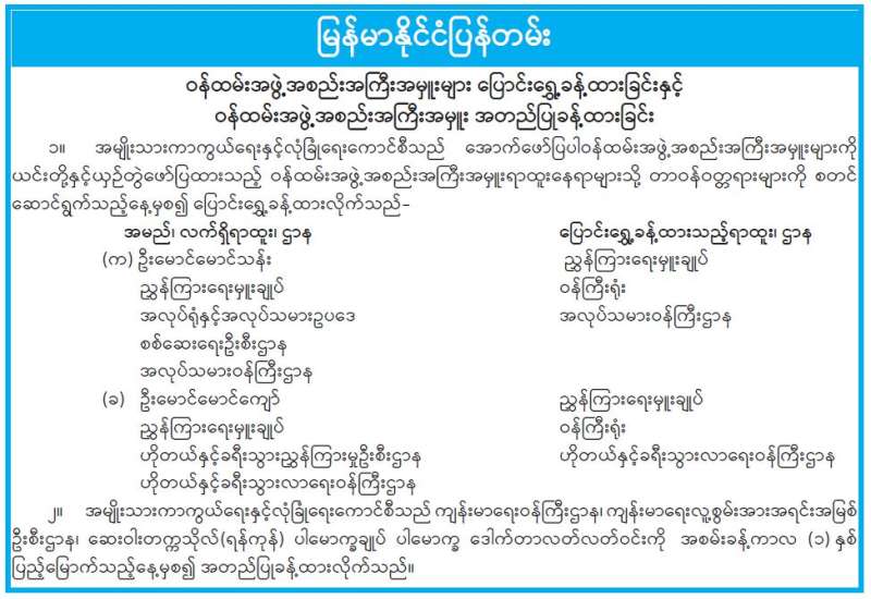 ရန်ကုန်မြို့နှင့် မန္တလေးမြို့အတွက် ရည်ညွှန်းလက်ကားဈေးနှုန်းများနှင့် ပြည်ထောင်စုနယ်မြေ နေပြည်တော်၊ တိုင်းဒေသကြီး/ ပြည်နယ်၊ မြို့တော်များအတွက် ရည်ညွှန်းလက်လီဈေးနှုန်းများ