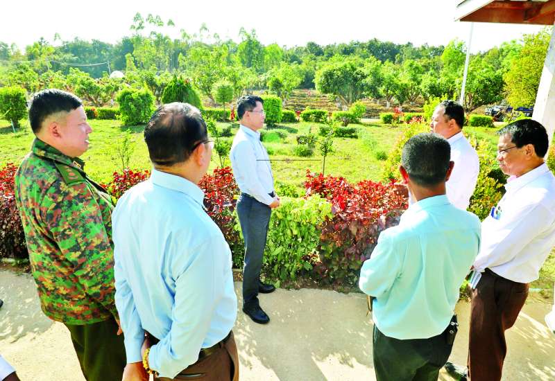 စိုက်ပျိုးရေး၊ မွေးမြူရေးနှင့်ဆည်မြောင်းဝန်ကြီးဌာန ပြည်ထောင်စုဝန်ကြီး ဦးမင်းနောင်သည် ရှမ်းပြည်နယ်လုံခြုံရေးနှင့် နယ်စပ်ရေးရာဝန်ကြီးနှင့်အတူ ယနေ့နံနက်ပိုင်းတွင် တောင်ကြီးမြို့နယ် ရွှေညောင်မြို့ရှိ စိုက်ပျိုးရေးဦးစီးဌာန၏ နမ့်လတ်ဥယျာဉ်ခြံသို့ သွားရောက်ပြီး ဒေသ၏စိုက်ပျိုးထုတ်လုပ်မှုတိုးတက်ရေး၊ စိုက်ပျိုးနည်းပညာ ပြန့်ပွား ရေးလုပ်ငန်းဆောင်ရွက်နေမှုများကို ကြည့်ရှုစစ်ဆေးသည်။