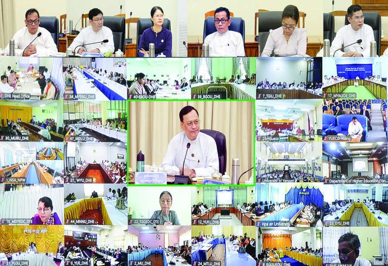 သိပ္ပံပွဲတော်(Science Festival)ကျင်းပရေးနှင့် တက္ကသိုလ်ဝင်စာမေးပွဲမအောင်မြင်သူများအတွက် အလုပ်အကိုင်ရရှိရေး အထောက်အကူပြုအတတ်ပညာကျွမ်းကျင်မှု (Skilled Labour) သင်တန်းများဖွင့်လှစ်ရေး ညှိနှိုင်းအစည်းအဝေးကို ယမန်နေ့မွန်းလွဲပိုင်းတွင် နေပြည်တော်ပညာရေးဝန်ကြီးဌာန ရုံးအမှတ်(၁၃)ရှိ အစည်းအဝေးခန်းမ၌ ကျင်းပသည်။
