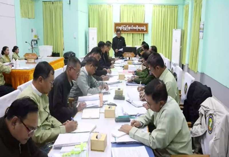 ကချင်ပြည်နယ်အတွင်း၌ ၂ဝ၂၅ ခုနှစ်၊ ပါတီစုံဒီမိုကရေစီအထွေထွေရွေးကောက်ပွဲ အပိုင်း (၂) နှင့် စပ်လျဉ်း၍ အောင်မြင်စွာကျင်းပနိုင်ရေး လုပ်ငန်းညှိနှိုင်းအစည်းအဝေးကို ယနေ့ညနေပိုင်းတွင် ကချင်ပြည်နယ်၊ မြစ်ကြီးနားမြို့၊ အစိုးရအဖွဲ့ရုံး၊ ခါကာဘိုရာဇီခန်းမ၌ ပြုလုပ်ခဲ့ရာ ပြည်နယ်ဝန်ကြီးချုပ် ဦးခက်ထိန်နန်၊ မြောက်ပိုင်းတိုင်းစစ်ဌာနချုပ် တိုင်းမှူး ဗိုလ်ချုပ် အောင်ဇော်ထွေးနှင့် ဌာနဆိုင်ရာ တာဝန်ရှိသူများ တက်ရောက်ကြသည်။