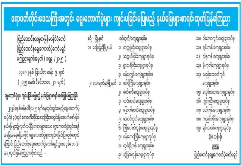 ကရင်ပြည်နယ်အတွင်း ရွေးကောက်ပွဲများကျင်းပခြင်းမပြုမည့် နယ်မြေများစာရင်း ထုတ်ပြန်ကြေညာ