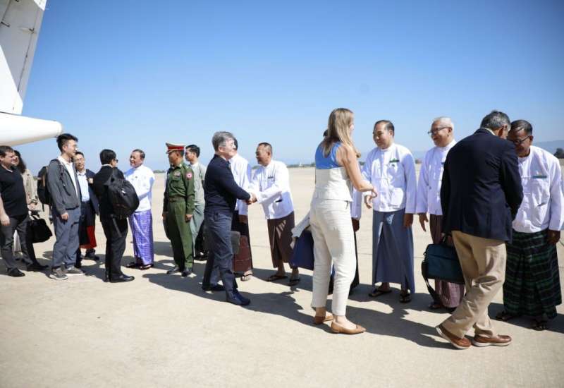 ၂၀၂၅ ခုနှစ် ဒီဇင်ဘာလ ၂၈ ရက်နေ့တွင် စတင်ကျင်းပပြုလုပ်မည့် ပါတီစုံဒီမိုကရေစီအထွေထွေရွေးကောက်ပွဲသို့ လာရောက်လေ့လာကြသည့် နိုင်ငံတကာရွေးကောက်ပွဲ စောင့်ကြည့်လေ့လာသူများသည် ယနေ့နံနက် ၁၁:၀၀ နာရီတွင် လေကြောင်းခရီးဖြင့် နေပြည်တော်သို့ရောက်ရှိလာရာ ပြည်ထောင်စုရွေးကောက်ပွဲကော်မရှင်အဖွဲ့ဝင် ဦးမျိုးလှိုင်၊ နေပြည်တော်ကောင်စီဝင်(၁) ဗိုလ်မှူးကြီး ရဲမိုး၊ ပြည်ထောင်စုနယ်မြေနှင့် ခရိုင်ရွေးကောက်ပွဲကော်မရှင်အဖွဲ့ခွဲ ဥက္ကဋ္ဌနှင့် အဖွဲ့ဝင်များ၊ ပြည်ထောင်စုရွေးကောက်ပွဲကော်မရှင်ရုံး တာဝန်ရှိသူများနှင့် ဌာနဆိုင်ရာတာဝန်ရှိသူများက နေပြည်တော်လေဆိပ်၌ ကြိုဆိုနှုတ်ဆက်ကြသည်။