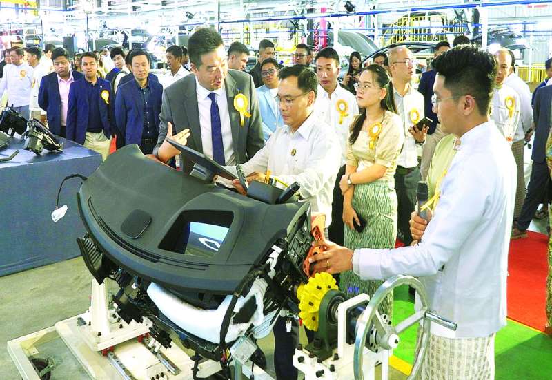 လျှပ်စစ်သုံးယာဉ်နှင့် ဆက်စပ်ပစ္စည်းများ သုတေသနဖွံ့ဖြိုးရေးနှင့် နည်းပညာပြန့်ပွားရေးလုပ်ငန်းကော်မတီဥက္ကဋ္ဌ သိပ္ပံနှင့်နည်းပညာဝန်ကြီးဌာန ဒုတိယဝန်ကြီး ဒေါက်တာအောင်ဇေယျသည် ယနေ့နံနက်ပိုင်းတွင် ရန်ကုန်တိုင်းဒေသကြီး ရွှေပြည်သာမြို့နယ် သာဓုကန်စက်မှုဇုန်ရှိ အားသစ်မာန် စွမ်းအားသစ်ကုမ္ပဏီလီမိတက်၏ လျှပ်စစ်သုံးယာဉ် (Electric Vehicle ၊ EV) များကို Semi Knocked Down (SKD) စနစ်ဖြင့် တပ်ဆင်ထုတ်လုပ်သည့် စက်ရုံဖွင့်ပွဲကို တက်ရောက်သည်။