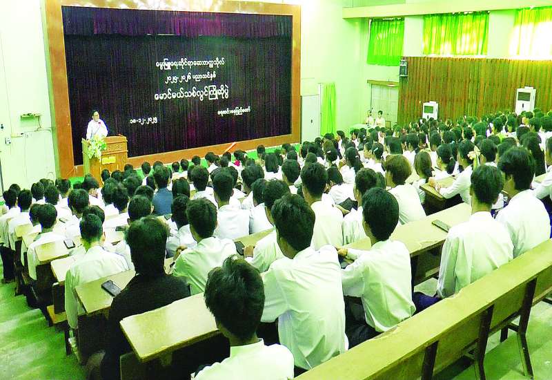 ရန်ကုန်တက္ကသိုလ် သိပ္ပံပွဲခင်း ကျင်းပနိုင်ရေး ရန်ကုန်တက္ကသိုလ် ပါမောက္ခချုပ်၊ ဒုတိယပါမောက္ခချုပ်များ၊ ပါမောက္ခ (ဌာနမှူး) များနှင့်တွေ့ဆုံဆွေးနွေးပွဲကို ယနေ့မွန်းလွဲပိုင်းတွင် ရန်ကုန်တက္ကသိုလ် ဝိဇ္ဇာခန်းမ၌ ကျင်းပရာ ဒုတိယဝန်ကြီး ဦးနေမျိုးလှိုင်၊ ညွှန်ကြားရေးမှူးချုပ်များ၊ ဒုတိယညွှန်ကြားရေးမှူးချုပ်များနှင့် တာဝန်ရှိသူများ တက်ရောက်ကြသည်။