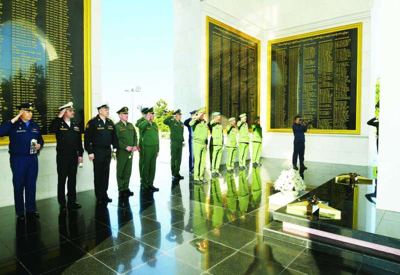 တတိယအကြိမ် မြန်မာ-ရုရှား ပူးတွဲအကြမ်းဖက်မှု တိုက်ဖျက်ရေးကော်မတီအစည်းအဝေးသို့ တက်ရောက်ခဲ့သည့် ရုရှားတပ်မတော်ကြည်းတပ်ဖွဲ့၏ ငြိမ်းချမ်းရေးထိန်းသိမ်းမှုဆိုင်ရာ ဒုတိယကြည်းတပ်ဦးစီးချုပ် Colonel General Aleksandr Anatol-yevich Matovnikov ဦးဆောင်သော ကိုယ်စားလှယ်အဖွဲ့ဝင်များသည် ယနေ့နံနက်ပိုင်းတွင် သူရဲကောင်းဗိမာန်(နေပြည်တော်) သို့သွားရောက်၍ သူရဲကောင်းဗိမာန်အတွင်းရှိ အထိမ်းအမှတ်ကျောက်တိုင်ရှေ့၌ ဂုဏ်ပြုပန်းခြင်းများဖြင့် နိုင်ငံတော်နှင့် တပ်မတော်အတွက် တာဝန်ထမ်းဆောင်ရင်း အသက်ပေးကျဆုံးသွားခဲ့ကြသည့် ခေတ်အဆက်ဆက်မှ သူရဲကောင်းစစ်သည်များအား အလေးပြုကြပြီး ဧည့်သည်တော်မှတ်တမ်းစာအုပ်တွင် လက်မှတ်ရေးထိုးကာ မှတ်တမ်းတင်ဓာတ်ပုံရိုက်ကြသည်။
