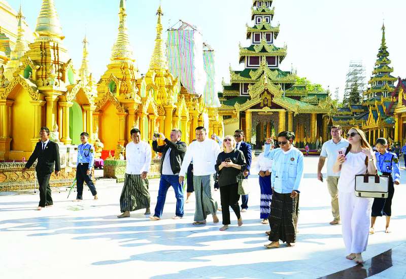 မြန်မာနိုင်ငံ၌ ရောက်ရှိနေသည့် ဘယ်လာရုစ်သမ္မတနိုင်ငံမှ စက်မှုဝန်ကြီး H. E. Mr. Andrei KUZNIATSOU၊ စိုက်ပျိုးရေးနှင့်စားနပ်ရိက္ခာဆိုင်ရာဝန်ကြီး H.E. Mr. Yury HORLAU ၊ ကျန်းမာရေးဝန်ကြီး H.E. Mr. Aliaksandr KHAJAYEU ၊ နိုင်ငံပိုင်အသေးစားစက်မှုလုပ်ငန်း “Bellegprom” ဥက္ကဋ္ဌ H.E. Ms. Nadzeya LAZAREVICH နှင့် ကိုယ်စားလှယ်အဖွဲ့သည် ရန်ကုန်မြို့ နိုင်ခြားရေးဝန်ကြီးဌာနမှ တာဝန်ရှိသူများနှင့်အတူ ယနေ့မွန်းလွဲပိုင်းတွင် ရွှေတိဂုံစေတီတော်မြတ်ကြီးသို့ရောက်ရှိရာ ရန်ကုန်တိုင်းဒေသကြီး လူမှုရေးဝန်ကြီး ဦးဌေးအောင်၊ ဘဏ္ဍာတော်ထိန်း ဂေါပကအဖွဲ့ များက ကြိုဆိုနှုတ်ဆက်ကြသည်။