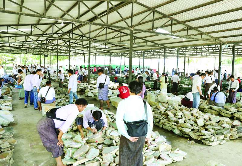 ၂၀၂၅ ခုနှစ် အကြိမ် (၆၀) မြောက် မြန်မာ့ကျောက်မျက်ရတနာပြပွဲနဝမနေ့ကို ယနေ့နံနက်ပိုင်းတွင် နေပြည်တော်ရှိ မဏိရတနာကျောက်စိမ်းခန်းမ၌ ဆက်လက်ကျင်းပရာ နံနက်ပိုင်းမှစတင်၍ ပြည်တွင်း၊ ပြည်ပရတနာကုန်သည်များသည် မဏိရတနာကျောက်စိမ်းခန်းမ အပြင်ဘက် သတ်မှတ်နေရာများအလိုက် ခင်းကျင်းပြသထားသည့် အုပ်စု (စီ) မှ ကျောက်စိမ်းအတွဲများကို စိတ်ကြိုက်လေ့လာကြည့်ရှုကြသည်။
