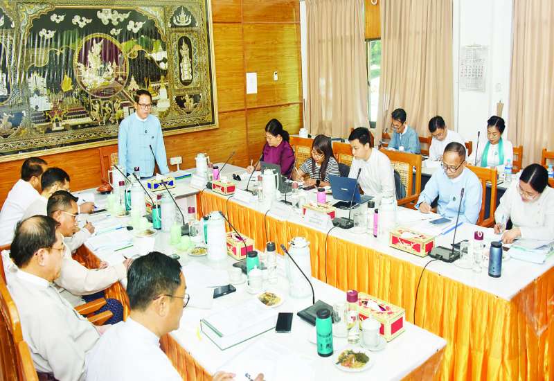 ပြန်ကြားရေးဝန်ကြီးဌာန ပုံနှိပ်ရေးနှင့်ထုတ်ဝေရေးဦးစီးဌာန စာဆိုဗိမာန် RC သုံးထပ်အဆောက်အအုံတည်ဆောက်နေမှုနှင့် စာပေဗိမာန်ပြည်သူ့စာကြည့်တိုက်အဖြစ် ပြောင်းရွှေ့ဖွင့်လှစ်ရန် ဆောင်ရွက်နေမှုအခြေအနေများ ရှင်းလင်းတင်ပြခြင်းကို ယနေ့မွန်းလွဲပိုင်းက နေပြည်တော်ရှိ ပြန်ကြားရေးဝန်ကြီးဌာန အစည်းအဝေးခန်းမ၌ ပြုလုပ်သည်။