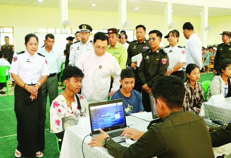 လူဝင်မှုကြီးကြပ်ရေးနှင့် ပြည်သူ့အင်အားဝန်ကြီးဌာန ပြည်ထောင်စုဝန်ကြီး ဦးမြင့်ကြိုင်သည် တာဝန်ရှိသူများနှင့်အတူ ယနေ့မွန်းလွဲပိုင်းက ဧရာဝတီတိုင်းဒေသကြီး ကျုံပျော်မြို့ ဧရာမင်းခန်းမ၌ လူဝင်မှု ကြီးကြပ်ရေးနှင့် ပြည်သူ့အင်အားဝန်ကြီးဌာန ကျုံပျော်မြို့နယ်ဦးစီးမှူးရုံးမှ ဝန်ထမ်းများက အိမ်ထောင်စုလူဦးရေစာရင်းနှင့် နိုင်ငံသားစိစစ်ရေးကတ်ပျက်စီး၊ ပျောက်ဆုံးသွားသည့် ဒေသခံပြည်သူများနှင့် နိုင်ငံသားစိစစ်ရေးကတ် မရရှိသေးသူများအား ပန်းခင်းစီမံချက်အဆင့် (၃) ဖြင့် ဆောင်ရွက်ပေးနေမှုကို ကြည့်ရှုအားပေးသည်။