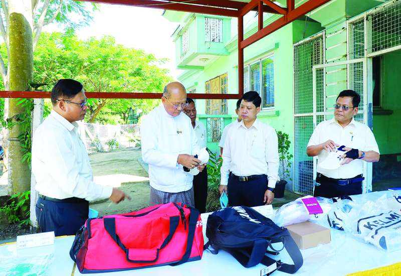 မြန်မာနိုင်ငံအိုလံပစ်ကော်မတီဥက္ကဋ္ဌ၊ အားကစားနှင့် လူငယ်ရေးရာဝန်ကြီးဌာနနှင့် ဟိုတယ်နှင့်ခရီးသွားလာရေးဝန်ကြီးဌာန ပြည်ထောင်စုဝန်ကြီး Jeng Phang နော်တောင်သည် အားကစားနှင့် ကာယပညာဦးစီးဌာန ညွှန်ကြားရေးမှူးချုပ် ဦးဉာဏ်ဇော်ဦးနှင့်အတူ ယနေ့နံနက်ပိုင်းတွင် (၃၃)ကြိမ်မြောက် အရှေ့တောင်အာရှ အားကစားပြိုင်ပွဲသို့ ဝင်ရောက်ယှဉ်ပြိုင်မည့် မြန်မာအားကစားအဖွဲ့၏ ပြိုင်ပွဲဝင်အသုံးအဆောင် ပစ္စည်းများ ဖွင့်ဖောက်စစ်ဆေးပြီးစီးမှု အခြေအနေနှင့် မန္တလေးငလျင်အပြီး ဝဏ္ဏသိဒ္ဓိအားကစားရုံ(A) ပြန်လည်ပြုပြင်ပြီးစီးမှုအခြေအနေများအား လိုက်လံကြည့်ရှုစစ်ဆေးသည်။