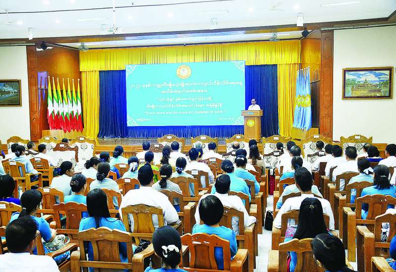 (၂၀၂၅)ခုနှစ် ကမ္ဘာ့ဆီးချိုသွေးချိုရောဂါကာကွယ်ထိန်းသိမ်းရေးနေ့ အထိမ်းအမှတ် အခမ်းအနားကို ယနေ့နံနက် ၉ နာရီတွင် ကျန်းမာရေးဝန်ကြီးဌာန ရုံးအမှတ်(၄) အစည်းအဝေးခန်းမ၌ ကျင်းပသည်။