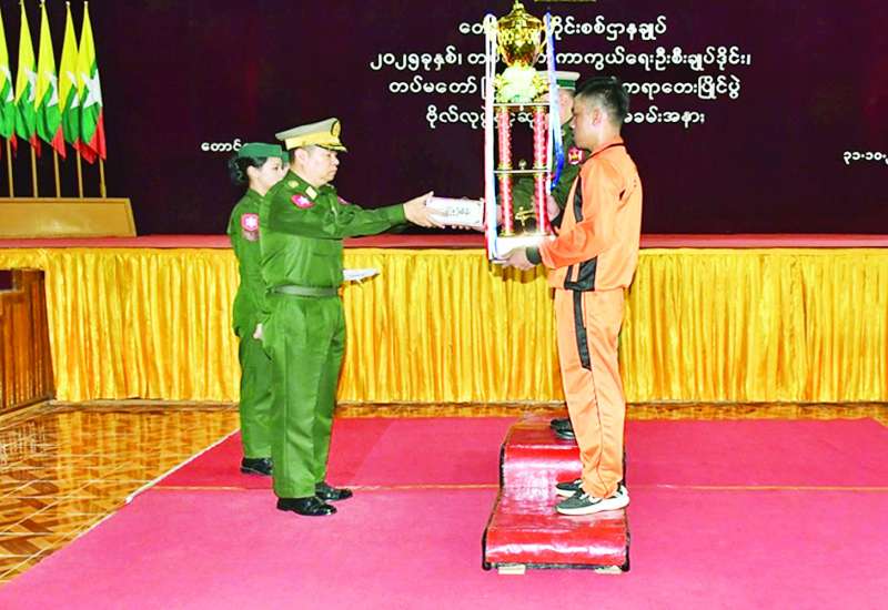 ၂၀၂၅ ခုနှစ်၊ တပ်မတော်ကာကွယ်ရေး ဦးစီးချုပ်ဒိုင်း၊ တပ်မတော်(ကြည်း၊ ရေ၊ လေ) ကရာတေးပြိုင်ပွဲ ဗိုလ်လုပွဲနှင့်ဆုချီးမြှင့်ပွဲကို ယနေ့ မွန်းလွဲပိုင်းတွင် တောင်ပိုင်းတိုင်းစစ်ဌာနချုပ် အေးချမ်းဖြိုးခန်းမ၌ ပြုလုပ်ရာ တပ်မတော်ကာကွယ်ရေးဦးစီးချုပ်ကိုယ်စား တောင်ပိုင်းတိုင်းစစ်ဌာနချုပ်တိုင်းမှူး ဗိုလ်ချုပ် ကြည်သိုက်၊ အရာရှိ၊ စစ်သည်၊ မိသားစုဝင်များ၊ ဒိုင်အဖွဲ့ဝင်များနှင့် ပြိုင်ပွဲဝင်အားကစားသမားများ တက်ရောက်ကြသည်။