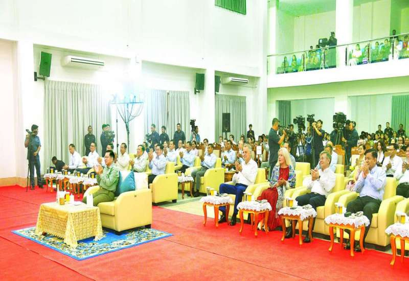 မြန်မာ-ရုရှား-ဘယ်လာရုစ် (၃) နိုင်ငံပူးပေါင်းဖျော်ဖြေတင်ဆက်မှုအခမ်းအနားအား ယနေ့ညနေပိုင်းတွင် နေပြည်တော်ရှိ Naypyitaw State Polytechnic University ၌ကျင်းပရာ ပြည်ထောင်စုသမ္မတမြန်မာနိုင်ငံတော်ယာယီသမ္မတ နိုင်ငံတော်လုံခြုံရေးနှင့် အေးချမ်းသာယာရေးကော်မရှင်ဥက္ကဋ္ဌ ဗိုလ်ချုပ်မှူးကြီးမင်းအောင်လှိုင် တက်ရောက်ချီးမြှင့်သည်။