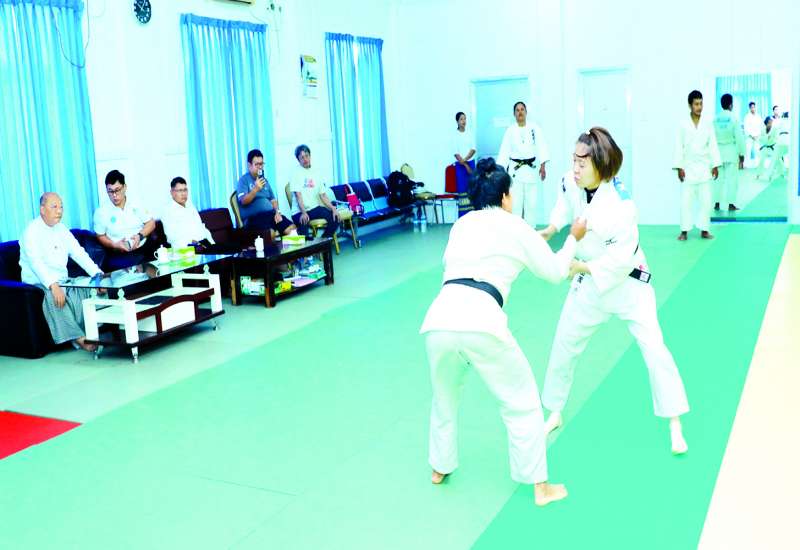 မြန်မာနိုင်ငံအိုလံပစ်ကော်မတီဥက္ကဋ္ဌ အားကစားနှင့် လူငယ်ရေးရာဝန်ကြီးဌာနနှင့် ဟိုတယ်နှင့်ခရီးသွားလာရေးဝန်ကြီးဌာန ပြည်ထောင်စုဝန်ကြီး Jeng Phang နော်တောင်သည် အားကစားနှင့် ကာယပညာဦးစီးဌာန ညွှန်ကြားရေးမှူးချုပ်နှင့်အတူ ယနေ့နံနက်ပိုင်းတွင် (၃၃)ကြိမ်မြောက် အရှေ့တောင် အာရှအားကစားပြိုင်ပွဲသို့ ဝင်ရောက်ယှဉ်ပြိုင်ရန် နေပြည်တော်တွင် စခန်းဝင်လေ့ကျင့်လျက်ရှိသည့် ဂျူဒိုနှင့်ပီတန်းအားကစားနည်းမှ ပဏာမလက်ရွေးစင် အားကစားသမားများ၏ လေ့ကျင့်နေမှုများကို လိုက်လံကြည့်ရှုအားပေးသည်။
