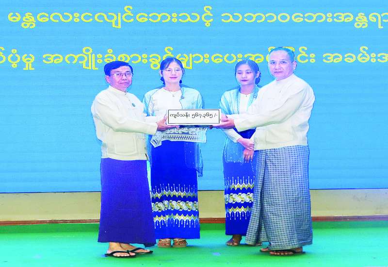 ပြည်ထောင်စုနယ်မြေ(နေပြည်တော်)အတွင်းရှိ အာမခံအလုပ်သမားများ၏ သားသမီးများအား ပညာသင် စရိတ်ဆိုင်ရာ မိသားစုထောက်ပံ့မှု အကျိုးခံစားခွင့်ပေးအပ်ခြင်းနှင့် သဘာဝဘေးအန္တရာယ်ကျရောက်မှု ဆိုင်ရာမိသားစုထောက်ပံ့မှု အကျိုးခံစားခွင့်ပေးအပ်ခြင်းအခမ်းအနားကို ယနေ့နံနက်ပိုင်းတွင် နေပြည်တော်ကောင်စီနယ်မြေ ဇမ္ဗူသီရိခန်းမ၌ ကျင်းပသည်။