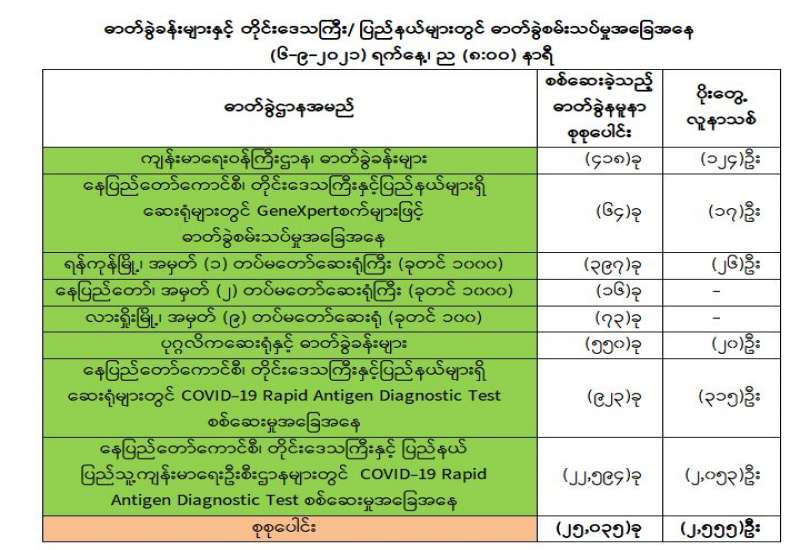COVID-19 ရောဂါစောင့်ကြပ်ကြည့်ရှုမှုနှင့်ပတ်သက်၍သတင်းထုတ်ပြန်ခြင်း (၅-၉-၂၀၂၁) ရက်နေ့၊ ည (၈:၀၀)နာရီ