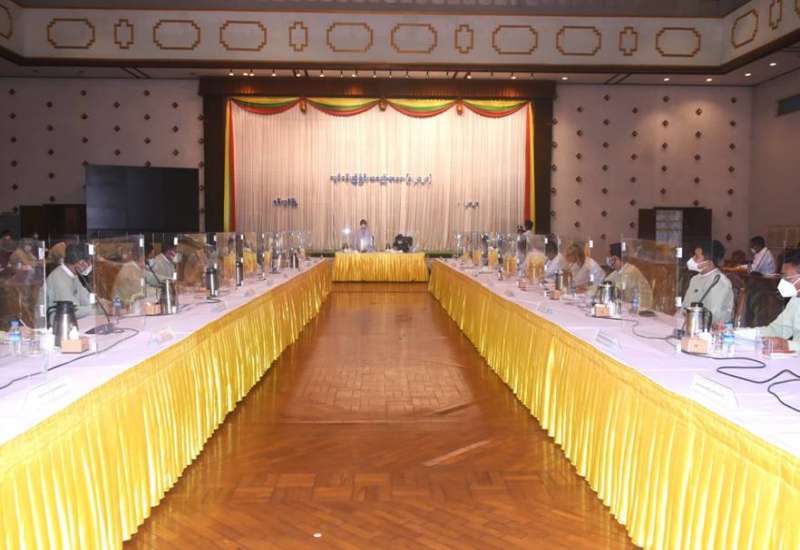 ရန်ကုန်တိုင်းဒေသကြီးအတွင်းရှိ စက်ရုံ၊ အလုပ်ရုံများမှ အလုပ်သမားများအား ကိုဗစ်-၁၉ ရောဂါ ကာကွယ်ဆေး ထိုးနှံနိုင်မှု အခြေအနေ လုပ်ငန်းညှိနှိုင်း အစည်းအဝေးကို ယနေ့ နံနက်ပိုင်းတွင် ရန်ကုန်တိုင်းဒေသကြီးအစိုးရအဖွဲ့ရုံး မင်္ဂလာခန်းမ၌ပြုလုပ်ရာ ရန်ကုန်တိုင်းဒေသကြီး ဝန်ကြီးချုပ် ဦးလှစိုး၊ ရန်ကုန်တိုင်းစစ်ဌာနချုပ် တိုင်းမှူး ဗိုလ်ချုပ် ညွန့်ဝင်းဆွေနှင့် ဌာနဆိုင်ရာ တာဝန်ရှိသူများတက်ရောက် ကြသည်။