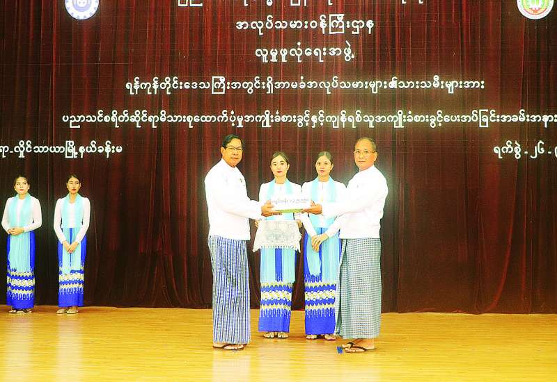 ရန်ကုန်တိုင်းဒေသကြီးအတွင်းရှိ အာမခံအလုပ်သမားများ၏ သားသမီးများအား ပညာသင်စရိတ်ဆိုင်ရာ မိသားစုထောက်ပံ့မှု အကျိုးခံစားခွင့်ပေးအပ်ခြင်းနှင့် ကျန်ရစ်သူအကျိုးခံစားခွင့်ပေးအပ်ခြင်းအခမ်းအနားကို ယနေ့နံနက်ပိုင်းတွင် လှိုင်သာယာ (အနောက်ပိုင်း) မြို့နယ်ခန်းမ၌ ကျင်းပရာ အလုပ်သမားဝန်ကြီးဌာန ပြည်ထောင်စုဝန်ကြီး ဦးအောင်ကျော်ဟိုး၊ ရန်ကုန်တိုင်းဒေသကြီးဝန်ကြီးချုပ်နှင့် တိုင်းဒေသကြီးဝန်ကြီးများ၊ အလုပ်သမားဝန်ကြီးဌာနမှ တာဝန်ရှိသူများ၊ အလုပ်ရှင်၊ အလုပ်သမားကိုယ်စားလှယ်များ တက်ရောက်ကြသည်။