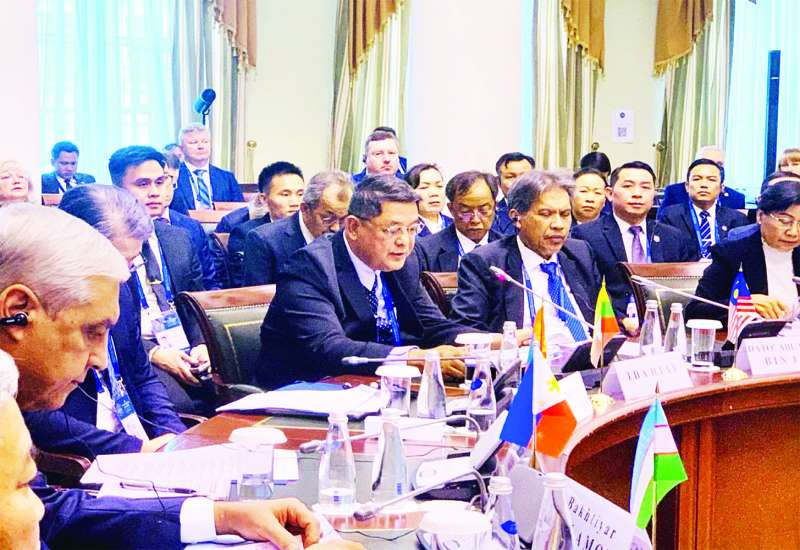 ရုရှားဖက်ဒရေးရှင်းနိုင်ငံသို့ အလုပ်သဘောခရီးရောက်ရှိနေသည့် ပြည်ထောင်စုသမ္မတမြန်မာနိုင်ငံတော် ယာယီသမ္မတ နိုင်ငံတော်လုံခြုံရေးနှင့် အေးချမ်းသာယာရေးကော်မရှင်ဥက္ကဋ္ဌ ဗိုလ်ချုပ်မှူးကြီး မင်းအောင်လှိုင်နှင့်အတူ လိုက်ပါလာသည့် ပြည်ထောင်စုဝန်ကြီးများသည် ရုရှားဖက်ဒရေးရှင်းနိုင်ငံ မော်စကိုမြို့၌ စက်တင်ဘာ ၂၆ ရက် ဒေသစံတော်ချိန် နေ့လယ်ပိုင်းက “အရာအားလုံးက အက်တမ်ကနေ စတင်တယ်” ဟူသော ခေါင်းစဉ်ဖြင့် ကျင်းပပြုလုပ်သည့် မျက်နှာစုံညီအစည်းအဝေးကို ပါဝင်တက်ရောက်ခဲ့ကြောင်း သိရသည်။