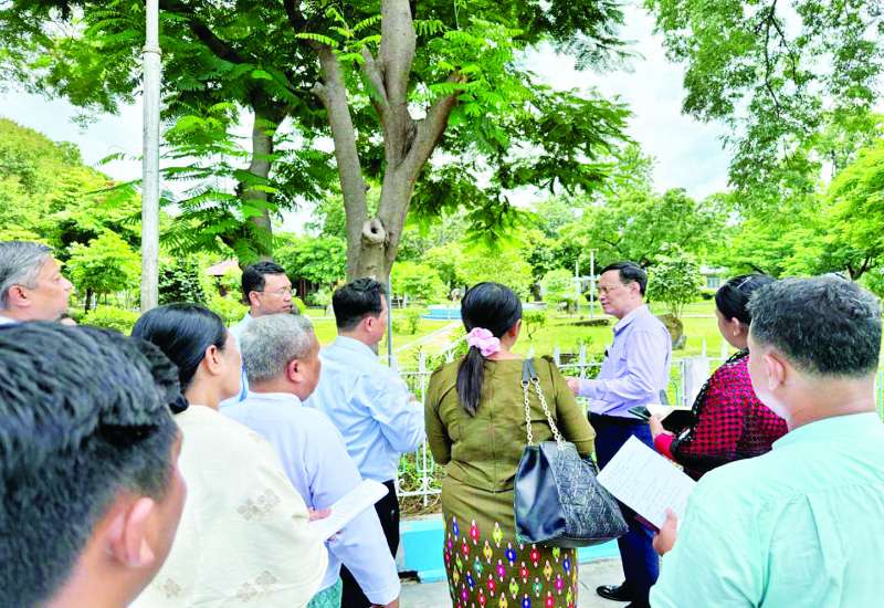 ပညာရေးဝန်ကြီးဌာန ဒုတိယဝန်ကြီး ဒေါက်တာဇော်မြင့်သည် တာဝန်ရှိသူများနှင့်အတူ ယနေ့နံနက်ပိုင်းတွင် မန္တလေးတက္ကသိုလ် ရာပြည့်သဘင်ကျင်းပရေး ပြင်ဆင်ဆောင်ရွက်ထားရှိမှု၊ မန္တလေးတက္ကသိုလ်ဥပဓိရုပ်ကောင်းမွန်ရေး ပြင်ဆင်ဆောင်ရွက်ထားရှိမှု၊ ဖွင့်ပွဲအခမ်းအနားကျင်းပမည့် နေရာများ သန့်ရှင်းသာယာလှပရေး ဆောင်ရွက်ထားရှိမှုနှင့် ပြခန်းများ ခင်းကျင်းပြသရန် စီစဉ်ထားရှိမှုအခြေအနေများကို လှည့်လည်ကြည့်ရှုသည်။