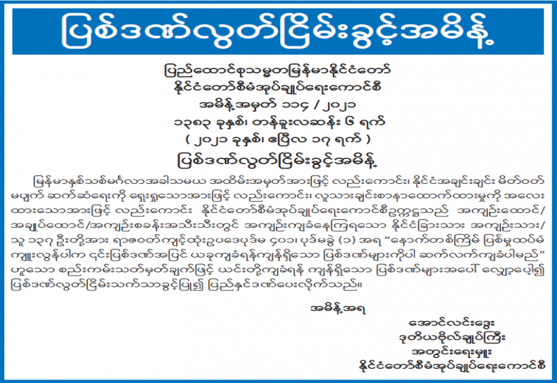 ပြည်ထောင်စုသမ္မတမြန်မာနိုင်ငံတော်သည် မြန်မာနှစ်သစ်မင်္ဂလာအခါသမယအထိမ်းအမှတ်အား ဖြင့် လည်းကောင်း ၊ အေးချမ်းသာယာပြီး ခေတ်မီဖွံ့ဖြိုးတိုးတက်သော စည်းကမ်းပြည့်ဝသည့် ဒီမိုက ရေစီ နိုင်ငံ တော်သစ်တည်ဆောက်နေချိန်တွင် ပြစ်ဒဏ်ကျ အကျဉ်းသား၊ အကျဉ်းသူများမှလည်း တစ်ဖက် တစ်လမ်းမှ အကျိုးပြုစေမည့် နိုင်ငံသားများအဖြစ်သို့ ပြောင်းလဲပေးရန်အတွက်လည်းကောင်း၊ ပြည်သူ လူထု နှလုံးစိတ်ဝမ်းအေးချမ်းစေရေးနှင့် လူသားချင်းစာနာထောက်ထားမှုကို အလေးထားသော အားဖြင့် လည်းကောင်း၊ နိုင်ငံအချင်းချင်း မိတ်ဝတ်မပျက်ဆက်ဆံရေးကို ရှေးရှုသောအားဖြင့် လည်း ကောင်း၊ နိုင်ငံတော် စီမံအုပ်ချုပ်ရေးကောင်စီဉက္ကဌ က အမိန့်အမှတ် ၁၁၃/၂၀၂၁ နှင့် ၁၁၄/၂၀၂၁ တို့ဖြင့် အကျဉ်းထောင်၊ အချုပ်ထောင်၊ စခန်းအသီးသီးတို့တွင် အကျဉ်းကျခံနေကြရသော အကျဉ်းသား၊ အကျဉ်းသူ နိုင်ငံသား ၂၃၀၄၇ ဦးနှင့် နိုင်ငံခြားသား အကျဉ်းသား၊အကျဉ်းသူ ၁၃၇ ဦး၊ စုစုပေါင်း ၂၃၁၈၄ ဦးတို့ကို ယနေ့တွင် ပြစ်ဒဏ်လွတ်ငြိမ်းသက်သာခွင့် ပြုခဲ့ကြောင်းသိရသည်။