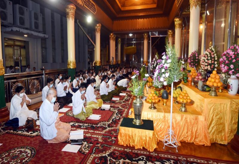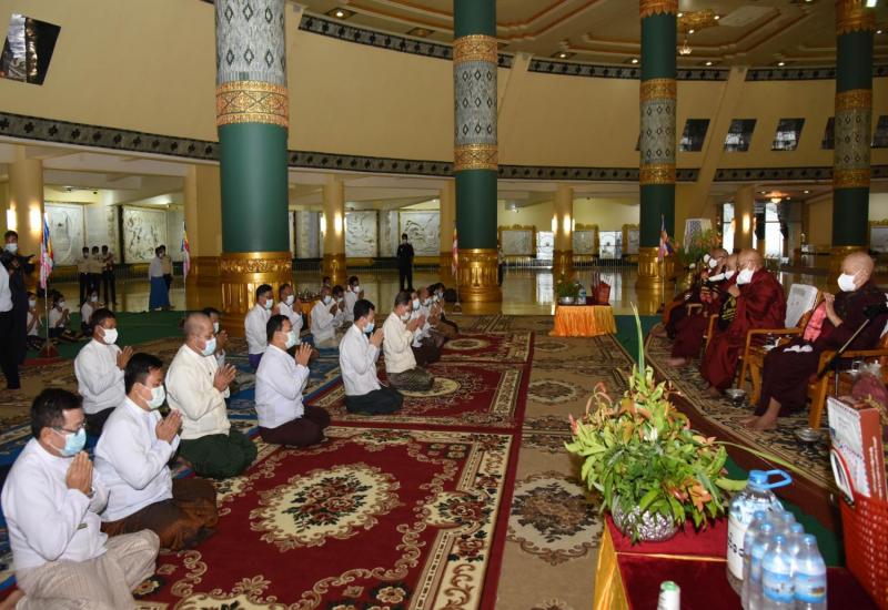 ၁၃၈၃ ခုနှစ်၊ မြန်မာ့နှစ်သစ်ကူးအခါသမယတွင် နိုင်ငံသူ နိုင်ငံသားများ ဥပဒ်ဘေးဒဏ် ဘေးရန် အန္တရာယ်ကင်းဝေးစေရန်အတွက် နိုင်ငံတော်စီမံ အုပ်ချုပ် ရေး ကောင်စီ မြန်မာ့ နှစ်သစ်ကူး အန္တရာယ်ကင်းပရိတ်တရားတော်နာ အခမ်း အနားကို ယနေ့ နံနက်ပိုင်းတွင် နေပြည်တော်ရှိ နိုင်ငံတော်စီမံအုပ်ချုပ်ရေး ကောင်စီ ဥက္ကဋ္ဌရုံး ငုရွှေဝါခန်းမ၌ ကျင်းပသည်။