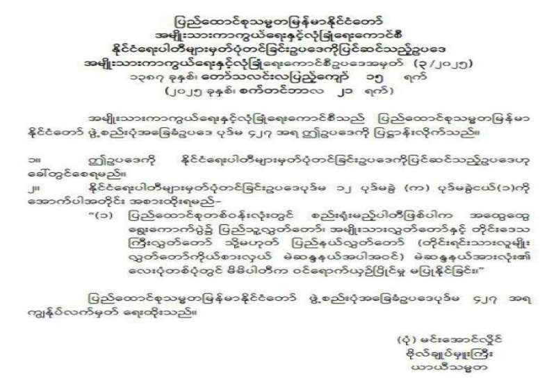 အကြမ်းဖက်အုပ်စုအဖြစ် ကြေညာထားသည့် CRPH ၊ NUG နှင့် ယင်းတို့၏ လက်ဝေခံအဖွဲ့အစည်းများ၊ ယင်းတို့နှင့် ဆက်နွှယ်နေသော အဖွဲ့အစည်းများ၊ လူပုဂ္ဂိုလ်များသည် နိုင်ငံတော်တည်ငြိမ်အေးချမ်းရေးကို ပျက်ပြားစေရန်နှင့် အစိုးရယန္တရားများ ပျက်ပြားစေရန် ရည်ရွယ်လျက် လှုံ့ဆော်ခြင်း၊ ဝါဒဖြန့်ခြင်းများပြုလုပ်ခဲ့မှုအပေါ် ဥပဒေနှင့်အညီ ထိရောက်စွာ အရေးယူသွားမည်ဖြစ်ကြောင်းနှင့် ထိုသို့လှုံ့ဆော်သူ၊ ဝါဒဖြန့်သူများအား ဆက်လက်ဖော်ထုတ်အရေးယူသွားမည်ဖြစ်ကြောင်း မိဘပြည်သူများ သိရှိနိုင်ရေး အသိပေးသတင်းထုတ်ပြန်ပြီးဖြစ်သည်။