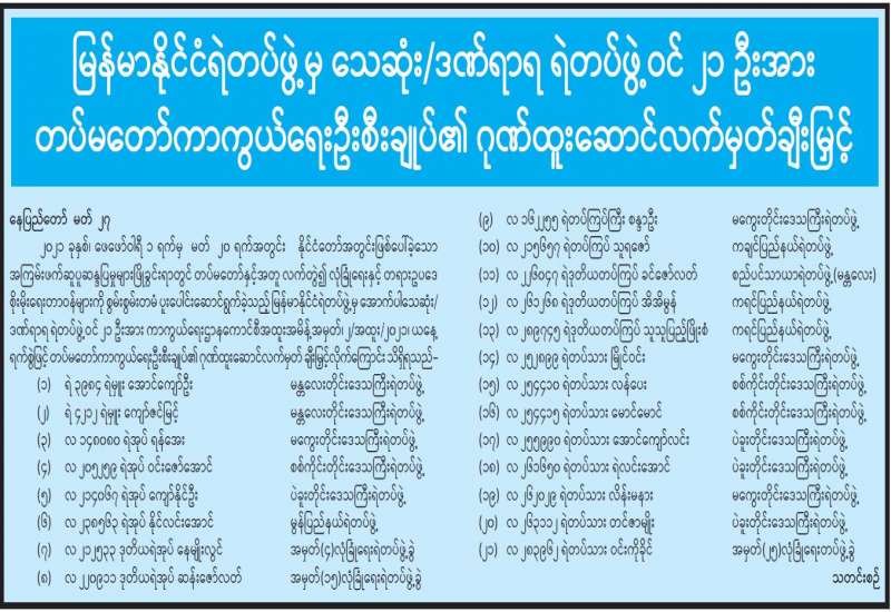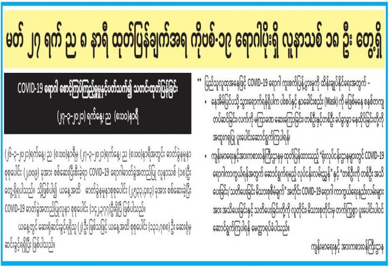 (၂၀၂၁ ခုနှစ်၊ မတ်လ (၂၇)ရက်နေ့ ည(၇:၀၀)နာရီအချိန် ထုတ်ပြန်ချက်)