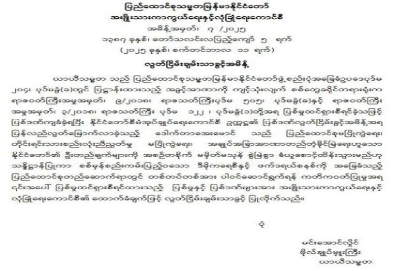 ရန်ကုန်မြို့နှင့် မန္တလေးမြို့အတွက် ရည်ညွှန်းလက်ကားဈေးနှုန်းများနှင့် ပြည်ထောင်စုနယ်မြေ နေပြည်တော်၊ တိုင်းဒေသကြီး/ပြည်နယ် မြို့တော်များအတွက် ရည်ညွှန်းလက်လီဈေးနှုန်းများ