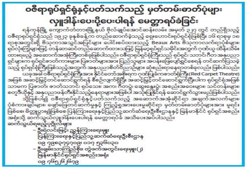 ရန်ကုန်မြို့ ကျောက်တံတားမြို့နယ် ဗိုလ်ချုပ်အောင်ဆန်းလမ်း အမှတ် ၃၂၇ တွင် တည်ရှိသည့် ဝဇီရာရုပ်ရှင်ရုံသည် ၁၉၂၃ ခုနှစ်ခန့်က တည်ဆောက်ခဲ့သည့် ရှေးဟောင်းရုပ်ရှင်ရုံဖြစ်ပြီး ၁၆ ရာစုမှ ၁၈ ရာစုအတွင်းရှိ ဗိသုကာအသွင်အပြင်များ ပေါင်းစပ်ထားသည့် Beaux Arts ဗိသုကာလက်ရာပုံစံများ၊ ရုပ်လုံးကြွများဖြင့် တန်ဆာဆင်တည်ဆောက်ထားသဖြင့် မြန်မာ့ရုပ်ရှင်သမိုင်းအတွက် ဂုဏ်ယူထိန်းသိမ်းထားရမည့် အဆောက်အအုံကြီးတစ်ခုဖြစ်ပါသည်။ ဝဇီရာရုပ်ရှင်ရုံကြီးသည် ရုပ်ရှင်၊ သဘင်၊ ဂီတအနုပညာရှင်များက ရုပ်ရှင်ဇာတ်ကားများ၊ ပြဇာတ်များအား ပြည်သူများ အပန်းဖြေပျော်ရွှင်စေရန် တင်ဆက်ပြသခဲ့သည့် ရုပ်ရှင်ရုံကြီးဖြစ်သည့်အတွက် အနုပညာစိတ်ဝိညာဉ်များ ဆုံစည်းရာနေရာတစ်ခုလည်းဖြစ်ပါသည်။