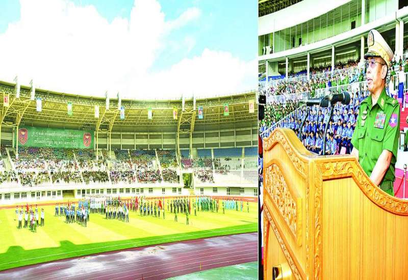 ၂၀၂၅ ခုနှစ်၊ တပ်မတော်ကာကွယ်ရေးဦးစီးချုပ်ဖလားတပ်မတော် (ကြည်း၊ ရေ၊ လေ) ဘောလုံးပြိုင်ပွဲ ဖွင့်ပွဲအခမ်းအနားကို ယနေ့ညနေပိုင်းတွင် နေပြည်တော်ရှိ ဇေယျာသီရိတပ်မတော်အားကစားကွင်း၌ ကျင်းပပြုလုပ်ခဲ့ရာ နိုင်ငံတော်လုံခြုံရေးနှင့် အေးချမ်းသာယာရေးကော်မရှင်ဥက္ကဋ္ဌ တပ်မတော်ကာကွယ်ရေးဦးစီးချုပ် ဗိုလ်ချုပ်မှူးကြီးမင်းအောင်လှိုင် ကိုယ်စားတပ်မတော်အားကစားနှင့် ကာယပညာအုပ်ချုပ်ရေးအဖွဲ့ဥက္ကဋ္ဌ စစ်ရေးချုပ်ဒုတိယဗိုလ်ချုပ်ကြီး ဖုန်းမြတ်တက်ရောက်သည်။
