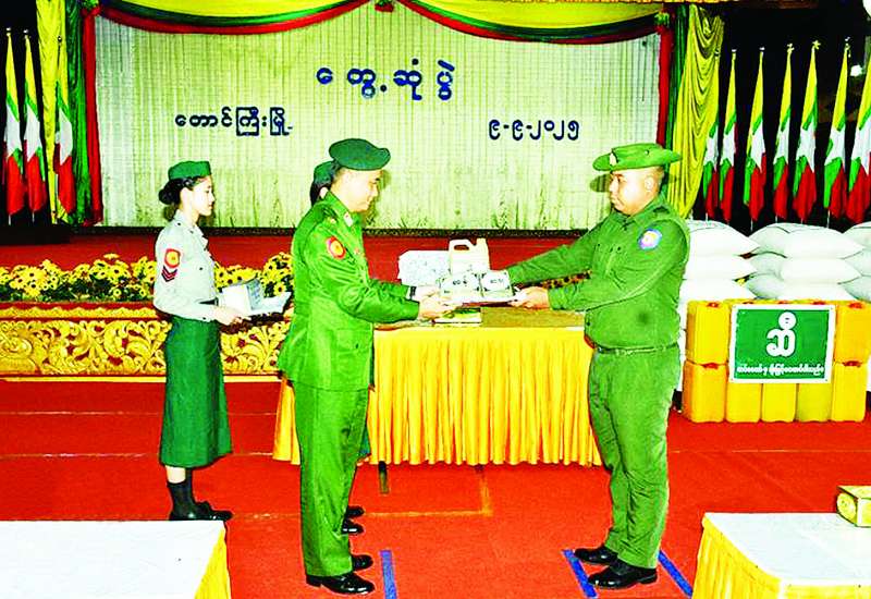 အရှေ့ပိုင်းတိုင်းစစ်ဌာနချုပ် ကွပ်ကဲမှုအောက်ရှိ ပြည်သူ့စစ် (ဌာနေ) တပ်ဖွဲ့ဝင်များ တွေ့ဆုံပွဲကို ယနေ့မွန်းလွဲပိုင်းတွင် တိုင်းစစ်ဌာနချုပ်၊ သံလွင်ခန်းမ၌ပြုလုပ်ရာ တိုင်းမှူး ဗိုလ်မှူးချုပ် နိုင်ဇော်ဦးနှင့် တာဝန်ရှိသူများ၊ ပြည်သူ့စစ် (ဌာနေ) တပ်ဖွဲ့ဝင်များ တက်ရောက်ကြသည်။