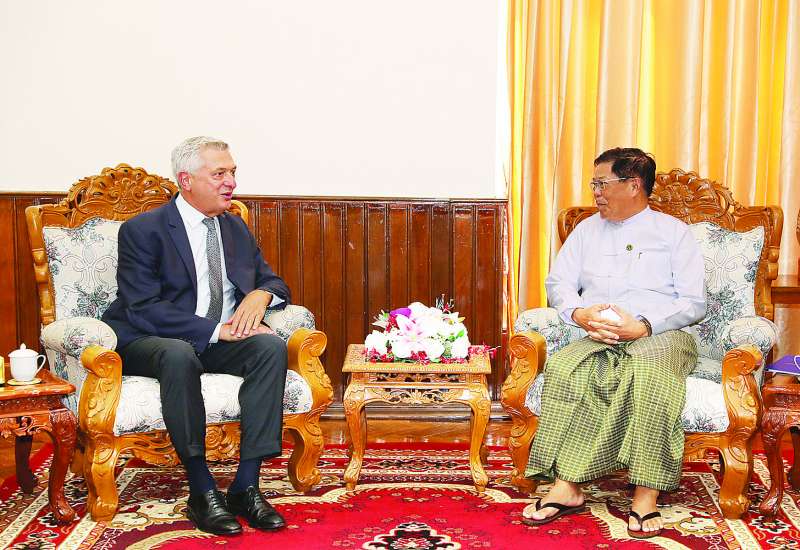 နယ်စပ်ရေးရာဝန်ကြီးဌာန ပြည်ထောင်စုဝန်ကြီး ဒုတိယဗိုလ်ချုပ်ကြီး ရာပြည့်သည် ကုလသမဂ္ဂဒုက္ခသည်များဆိုင်ရာ မဟာမင်းကြီး Mr. Filippo Grandi အား ယနေ့နံနက်ပိုင်းတွင် နယ်စပ်ရေးရာဝန်ကြီးဌာန ပြည်ထောင်စုဝန်ကြီး၏ ဧည့်ခန်းမ၌ လက်ခံတွေ့ဆုံသည်။