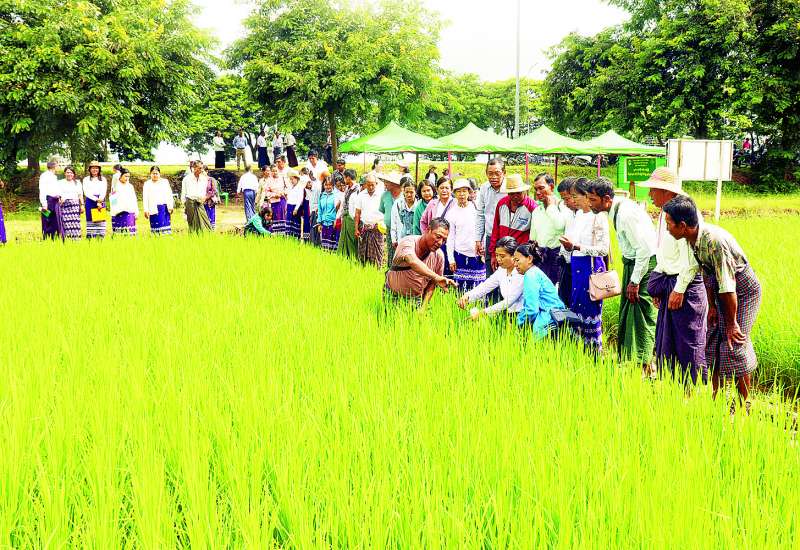 စပါးသီးနှံပန်းတိုင်အထွက်ရရှိရေးအတွက် စပါးပင်၏ အာဟာရဓာတ်လိုအပ်ချက်နှင့်အညီ ဓာတ်မြေဩဇာ စနစ်တကျထည့်သွင်းအသုံးပြုတတ်စေရန် ရည်ရွယ်၍ အရွက်အရောင်တိုင်းကတ်အသုံးပြုပြီး စပါးသီးနှံအာဟာရဓာတ်စီမံခန့်ခွဲမှု တောင်သူနည်းပညာပေးဆွေးနွေးပွဲနှင့် လက်တွေ့ကွင်းသရုပ်ပြပွဲကို ယနေ့နံနက်ပိုင်းက နေပြည်တော် ပုဗ္ဗသီရိမြို့နယ် ဘဲကုန်းစိုက်ကွင်း၌ ကျင်းပသည်။