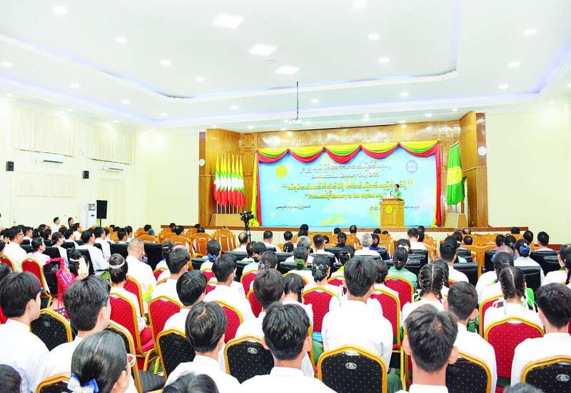 ၂၀၂၅ ခုနှစ် နိုင်ငံတကာစာတတ်မြောက်ရေးနေ့ အခမ်းအနားကို ယနေ့နံနက်ပိုင်းတွင် နေပြည်တော်ရှိ ပညာရေးဝန်ကြီးဌာနရုံးအမှတ်(၁၃)ရှိ အစည်းအဝေးခန်းမ၌ကျင်းပရာ ပြည်ထောင်စုဝန်ကြီးများ၊ နေပြည်တော်ကောင်စီဥက္ကဋ္ဌ၊ ဒုတိယဝန်ကြီးများ၊ ပညာရှင်အဖွဲ့များမှ ပညာရှင် ဆရာကြီး ဆရာမကြီးများ၊ အမြဲတမ်းအတွင်းဝန်များနှင့် တာဝန်ရှိသူများ၊ ဆရာ ဆရာမ များ၊ ကျောင်းသား ကျောင်းသူများနှင့် ဖိတ်ကြားထားသော ဧည့်သည်တော်များ တက်ရောက်ကြသည်။
