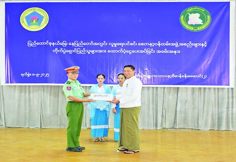 ၂၀၂၅-၂၀၂၆ ဘဏ္ဍာနှစ်အတွက် ပြည်ထောင်စုနယ်မြေ နေပြည်တော်အတွင်းရှိ အသက် ၈၅ နှစ်နှင့် အထက် သက်ကြီးပုဂ္ဂိုလ်များအား လူမှုရေးပင်စင်ထောက်ပံ့ခြင်း၊ စေတနာ့ဝန် ထမ်းအဖွဲ့အစည်းများနှင့် တိုက်ပွဲရှောင်ပြည်သူများအတွက် ထောက်ပံ့ကြေး ပေးအပ်ခြင်းအခမ်းအနားကို ယနေ့မွန်းလွဲပိုင်းတွင် ပျဉ်းမနားမြို့ မင်္ဂလာဗျူဟာခန်းမ၌ကျင်းပရာ လူမှုဝန်ထမ်း၊ ကယ်ဆယ်ရေးနှင့်ပြန်လည်နေရာချထား ရေးဝန်ကြီးဌာန ပြည်ထောင်စုဝန်ကြီး ဒေါက်တာ စိုးဝင်း၊ ဒုတိယဝန်ကြီးဒေါက်တာသန်းစိုး၊ နေပြည်တော်ကောင်စီဝင်များ၊ ဌာနဆိုင်ရာတာဝန်ရှိသူများနှင့် စေတနာ့ဝန်ထမ်းအဖွဲ့အစည်းများမှ ကိုယ်စားလှယ်များ တက်ရောက်ကြသည်။