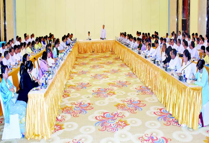 Gender/ CEDAW/ NSPAW/ AGMSF/ WPS အသိပညာပေး သင်တန်းဖွင့်ပွဲအခမ်းအနားကို ယနေ့နံနက်ပိုင်းတွင် နေပြည်တော်ရှိ လူမှုဝန်ထမ်း၊ ကယ်ဆယ်ရေးနှင့်ပြန်လည်နေရာချထားရေးဝန်ကြီးဌာန စုပေါင်းအစည်းအဝေးခန်းမ၌ ကျင်းပရာ လူမှုဝန်ထမ်း၊ ကယ်ဆယ်ရေးနှင့်ပြန်လည်နေရာချထားရေးဝန်ကြီးဌာန ပြည်ထောင်စုဝန်ကြီး ဒေါက်တာ စိုးဝင်းနှင့် တာဝန်ရှိသူများ၊ ပြည်ထဲရေးဝန်ကြီးဌာနအောက်ရှိ ဌာနများမှ သင်တန်းသား ၁၆ ဦး၊ သင်တန်းသူ ၁၉ ဦးတို့ တက်ရောက်ကြသည်။