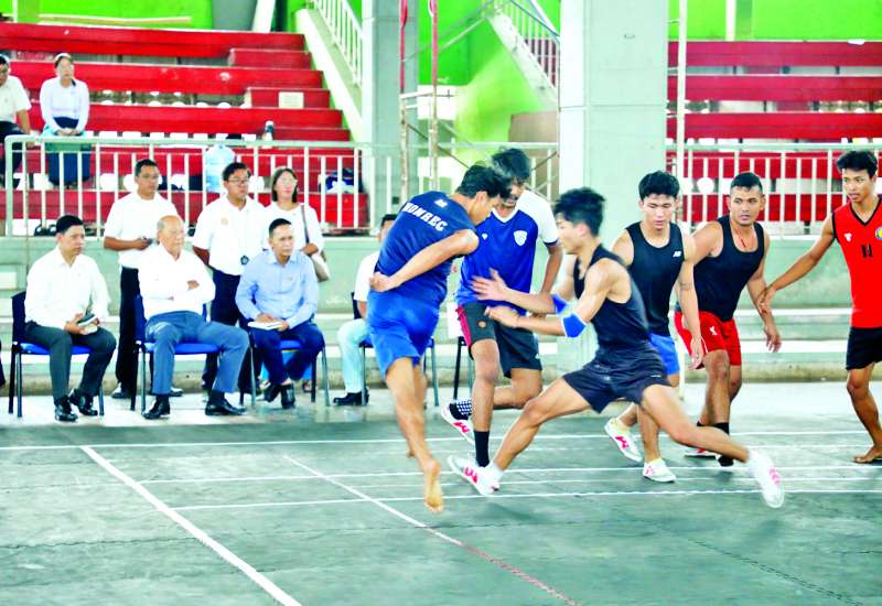 မြန်မာနိုင်ငံအိုလံပစ်ကော်မတီဥက္ကဋ္ဌ အားကစားနှင့်လူငယ်ရေးရာဝန်ကြီးဌာနနှင့် ဟိုတယ်နှင့်ခရီးသွားလာရေးဝန်ကြီးဌာန ပြည်ထောင်စုဝန်ကြီး Jeng Phang နော်တောင်သည် တာဝန်ရှိသူများနှင့်အတူ ယနေ့နံနက်ပိုင်းက ရန်ကုန်တိုင်းဒေသကြီး သင်္ဃန်းကျွန်းမြို့နယ် လူငယ်အားကစားလေ့ကျင့်ရေးစခန်း သုဝဏ္ဏရှိ ပိုက်ကျော်ခြင်းအားကစားရုံ၌ (၃၃)ကြိမ်မြောက် အရှေ့တောင်အာရှအားကစားပြိုင်ပွဲ ဝင်ရောက်ယှဉ်ပြိုင်ရန် စခန်းသွင်းလေ့ကျင့်နေသာ ပဏာမလက်ရွေးစင် Kabaddi အားကစားသမားများ လေ့ကျင့်နေမှုကိုကြည့်ရှုစစ်ဆေးပြီး စနစ်တကျပါဝင်ယှဉ်ပြိုင်နိုင်ရန် ခန္ဓာကိုယ်ကြံ့ခိုင်သန်မာမှုရှိစေရန်၊ ယုံကြည်မှုစိတ်ဓာတ်အပြည့်ဖြင့် ကြိုးစားကစားကြရန် မှာကြားသည်။