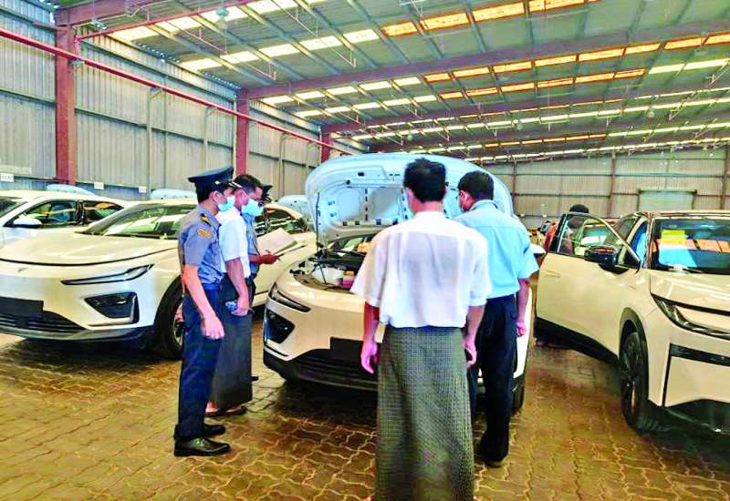 အမျိုးသားအဆင့် လျှပ်စစ်သုံးယာဉ်နှင့် ဆက်စပ်လုပ်ငန်းများဖွံ့ဖြိုးတိုးတက်ရေး ဦးဆောင်ကော်မတီ၏ခွင့်ပြုချက်ဖြင့် T & Z Finance Co., Ltd. မှ တင်သွင်းလာသော တရုတ်နိုင်ငံထုတ် GAC Toyota bZ3X အမျိုးအစားလျှပ်စစ်သုံးမော်တော်ယာဉ်များ၊ Grand Sirius Co., Ltd. မှ တင်သွင်းလာသော တရုတ်နိုင်ငံထုတ် NETA X အမျိုးအစား လျှပ်စစ်သုံးမော်တော်ယာဉ်များ ၊ Shwe Thway Co., Ltd. မှ တင်သွင်းလာသော တရုတ်နိုင်ငံထုတ် BYD SONG L အမျိုးအစား လျှပ်စစ်သုံးမော်တော်ယာဉ်များနှင့် BYD SEALION 07 အမျိုးအစား လျှပ်စစ်သုံးမော်တော်ယာဉ်များသည် ရန်ကုန်ဆိပ်ကမ်းသို့ ရောက်ရှိလာသဖြင့် ယနေ့တွင် လုပ်ထုံးလုပ်နည်းနှင့်အညီ ထုတ်ယူခွင့်ပြုခဲ့ကြောင်း သိရသည်။