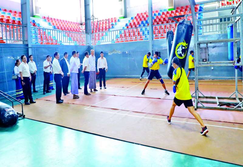 အားကစားနှင့် လူငယ်ရေးရာဝန်ကြီးဌာနနှင့် ဟိုတယ်နှင့်ခရီးသွားလာရေးဝန်ကြီးဌာန ပြည်ထောင်စုဝန်ကြီး Jeng Phang နော်တောင်သည် ဒုတိယဝန်ကြီး ဦးဇင်မင်းထက်၊ တာဝန်ရှိသူများနှင့်အတူ ယနေ့နံနက်ပိုင်းက (၃၃) ကြိမ်မြောက်အရှေ့တောင် အာရှအားကစားပြိုင်ပွဲ ဝင်ရောက်ယှဉ်ပြိုင်ရန် နေပြည်တော် အားကစားလေ့ကျင့်ရေးစခန်း(Gold Camp)၌ စခန်းဝင်လေ့ကျင့်လျက်ရှိသည့် လက်ဝှေ့နှင့် အလေးမအားကစားသမားများ၏ လေ့ကျင့်နေမှုများကို ကြည့်ရှုအားပေးသည်။